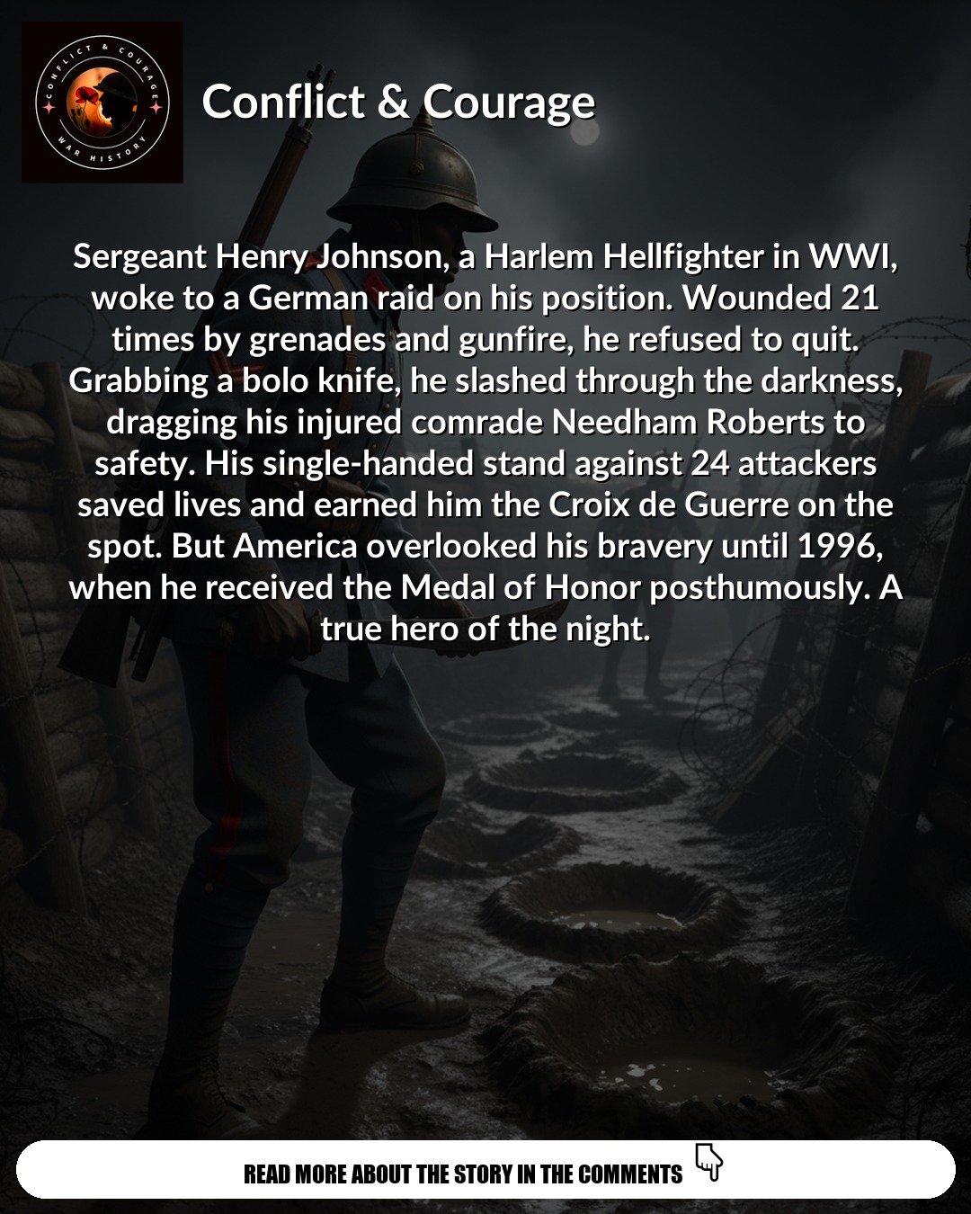 Sergeant Henry Johnson fought off 24 German raiders with a bolo knife in WWI, saving his wounded comrade. His incredible story of courage and the 97-year fight for recognition.